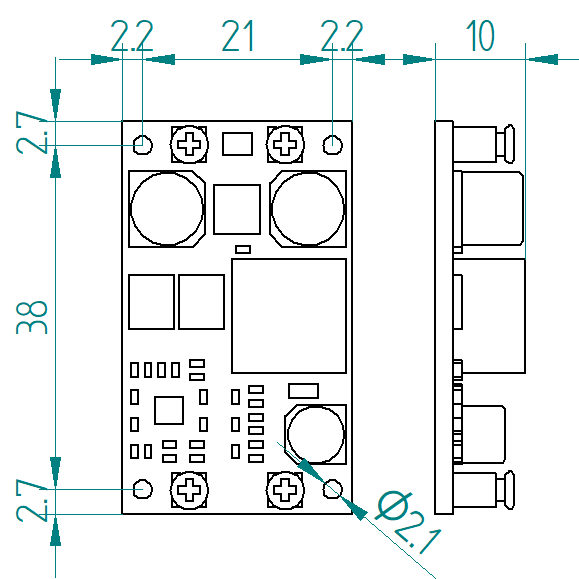 安装孔位 38x21mm@M2 封装尺寸 进入